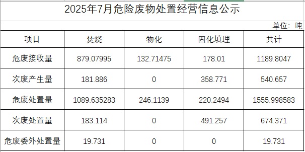 2025年七月危險廢物處置經營信息公示