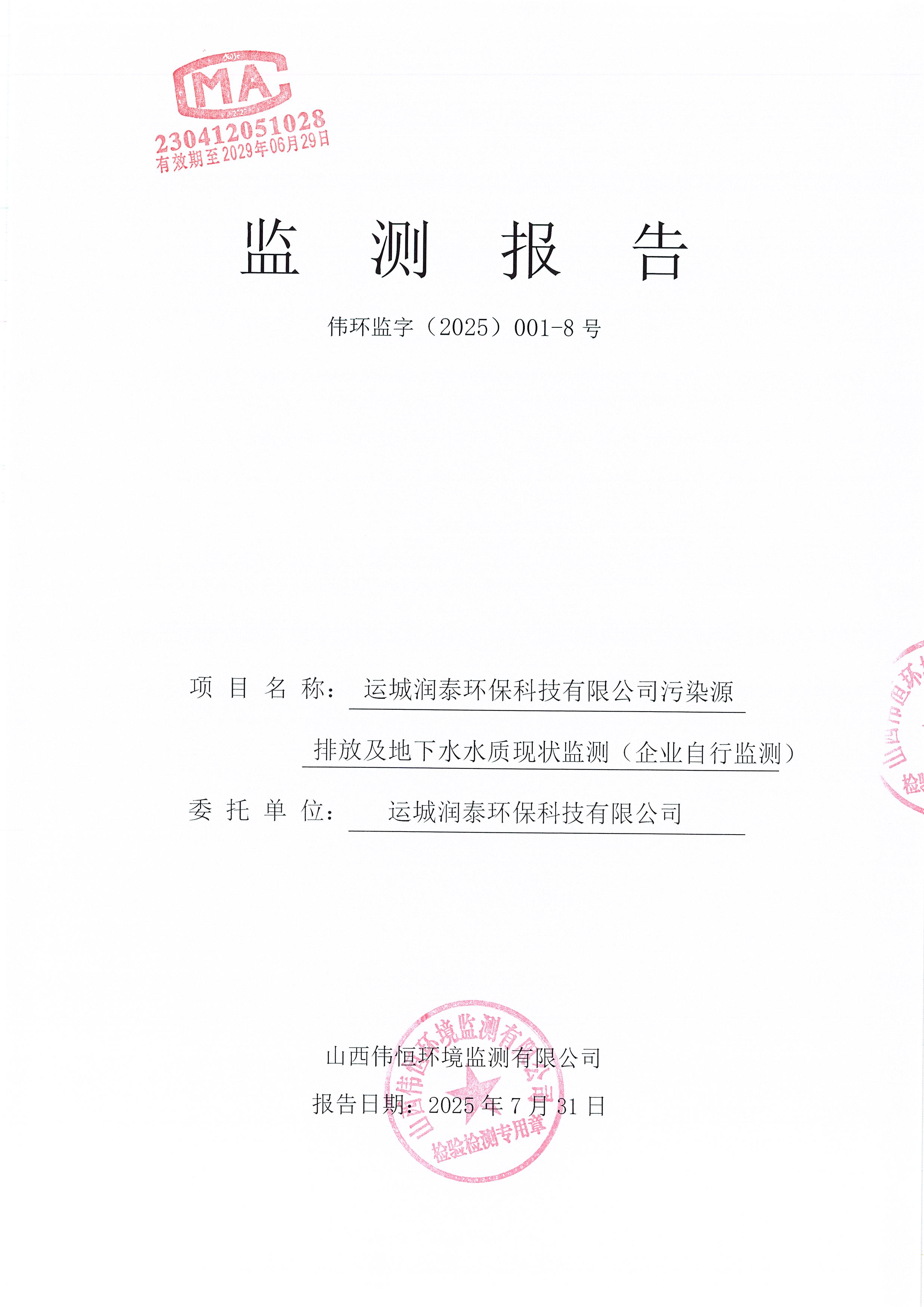2025年潤泰環保七月份自行監測報告