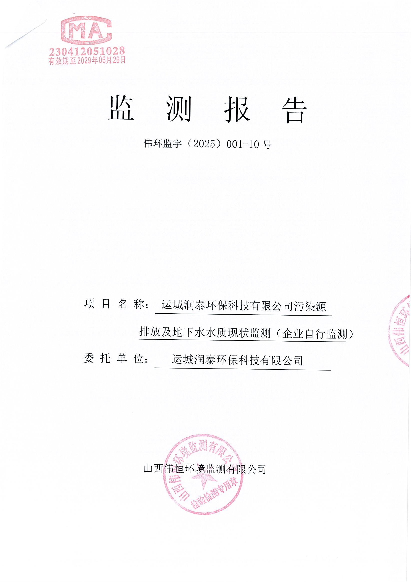 2025年潤泰環保六月份自行監測報告