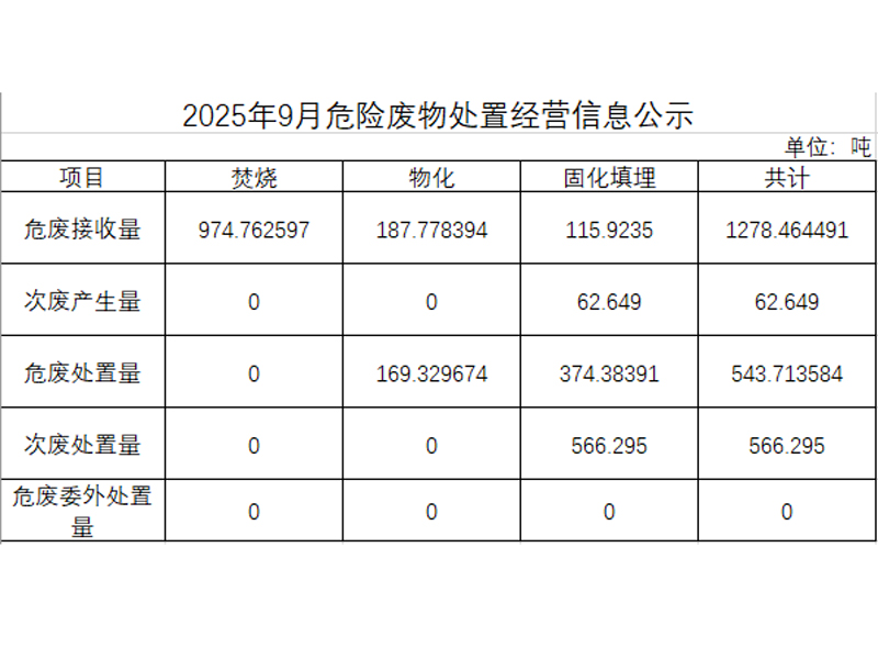 2025年九月危險廢物處置經營信息公示