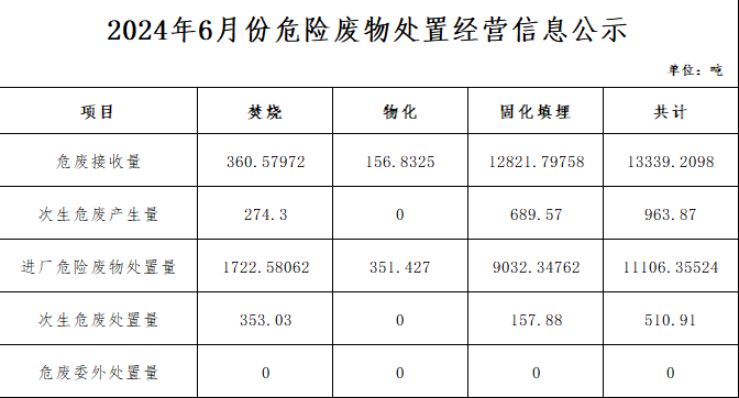 6月危險廢物處置經營信息公示